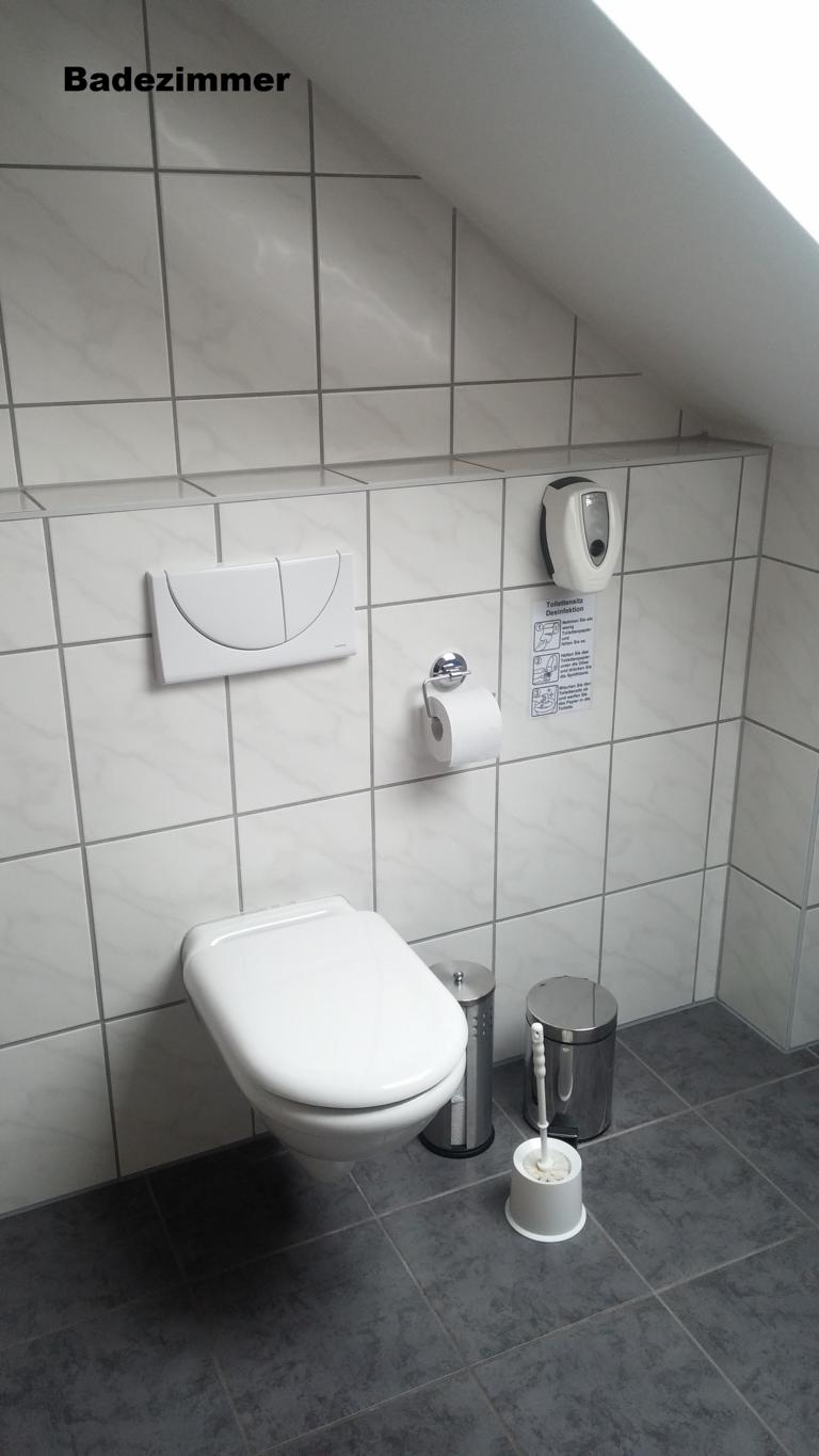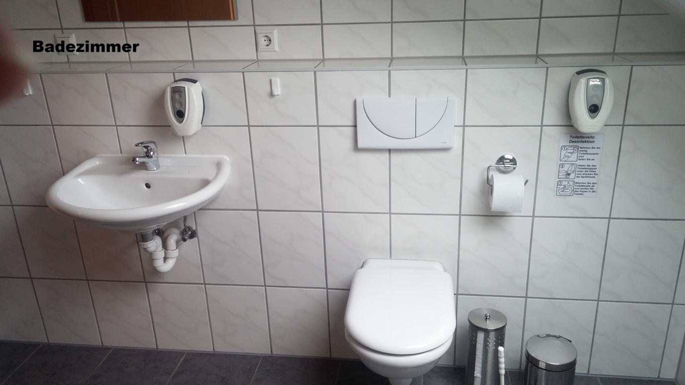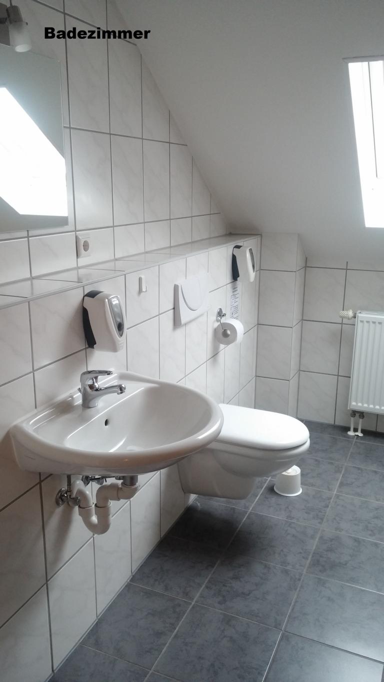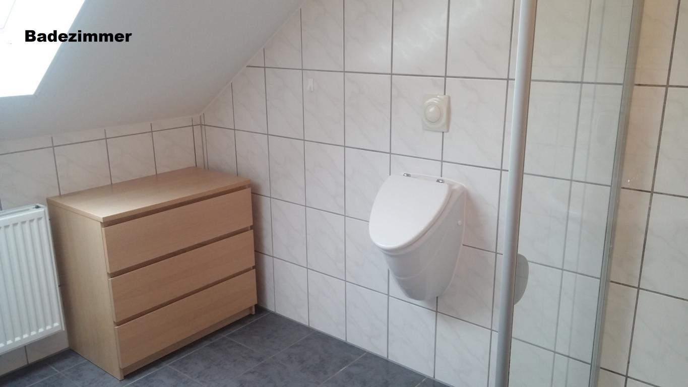 1 Gemeinschaftbad mit Dusche, WC, Waschtisch und Urinal.